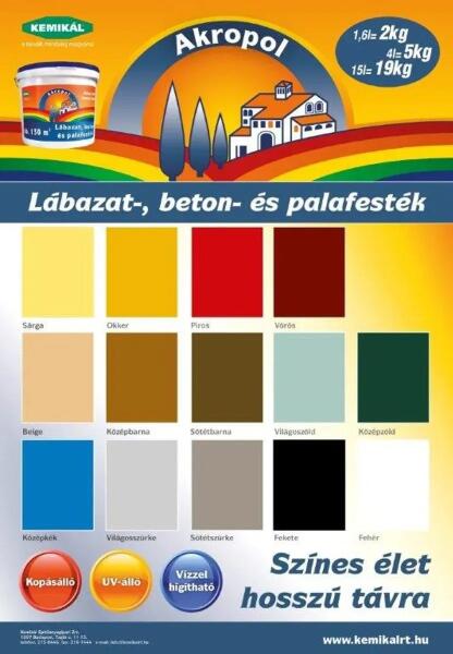 Kül- és beltérben használható festék. Jól tapad beton, betonyp, tégla, vakolat, fa, pala és különböző kőburkolat felületén. Alkalmazható járda, lépcső, terasz, gépkocsi beálló, épület- és kerítéslábazat